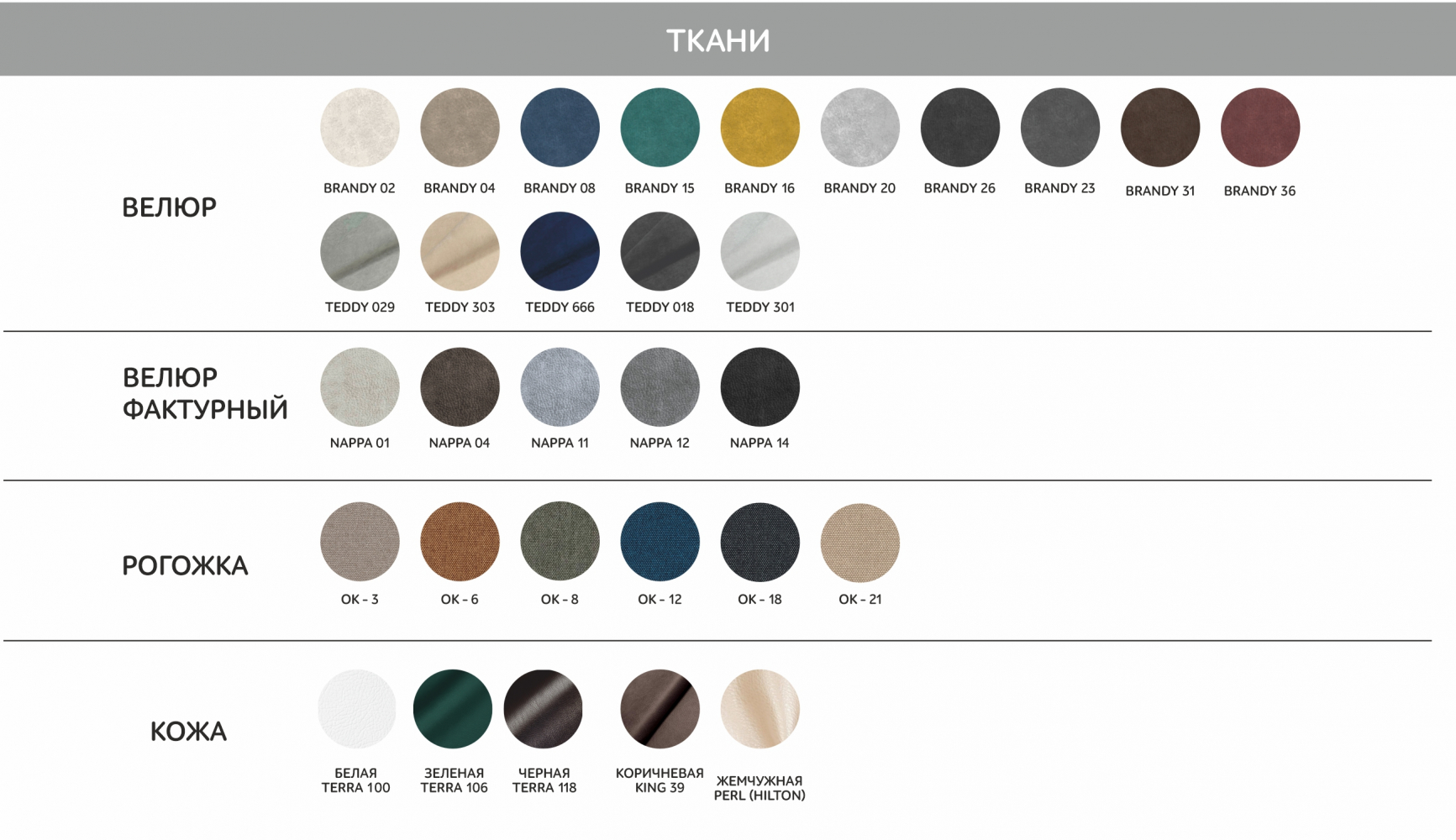 Цветовое решение — Кожа/Велюр/Ткань.